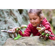 Verzamelen, zagen, boren, in elkaar steken – met de Terra Kids Connectors bouwset Dinosaurus kunnen kleine uitvinders allerlei verschillende dinosaurussen bouwen. Het principe is simpel en geniaal: verzamel hout in de natuur, bewerk dit thuis en boor er gaten in met de meegeleverde handboor, steek de connectors erin en verbind ze met een ander houten deel – in een mum van tijd komen een hele reeks dino's tot leven. In de handleiding staan allerlei suggesties voor verdere constructies.