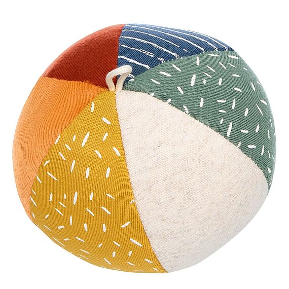 Het beste speelgoed is een bal! In alle eenvoud is dit klassiek stuk speelgoed net wat jouw mini nodig heeft. Ideaal om de motorische vaardigheden van baby's te ondersteunen.Deze patchworkbal met ophanglus komt uit de collectie van het Duitse Sigikid.