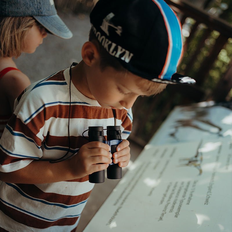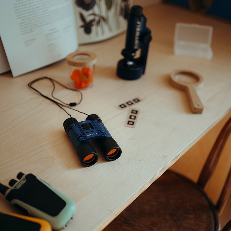 De echte verrekijker is compact en licht van gewicht, waardoor hij ideaal is voor kleine handjes. Hij past gemakkelijk in een rugzak of kan comfortabel om de nek gedragen worden met het meegeleverde koordje. Of het nu gaat om een wandeling in het bos, een dagje buiten of simpelweg het observeren van de tuin vanuit het raam: de KIDYBINOCULAR maakt elke ervaring leuker en leerzamer.