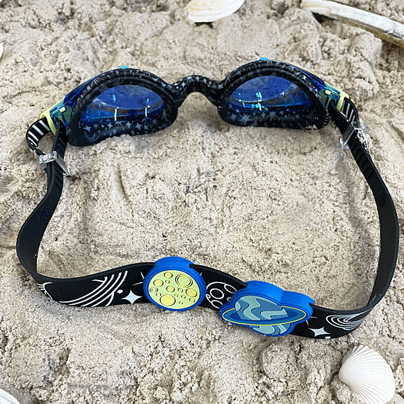 Duik tegen de sterren op met deze geweldige duikbril voor kinderen vanaf 3 jaar: Bling2o Solar System Zwembril is een super origineel zwemaccessoire met planeten en sterrenprint. De blauwe zwarte duikbril voor kinderen biedt niveau 100 comfort met een achterclip voor maximale verstelbaarheid en komt in een stevige en doorzichtige bewaardoos.