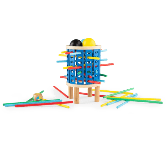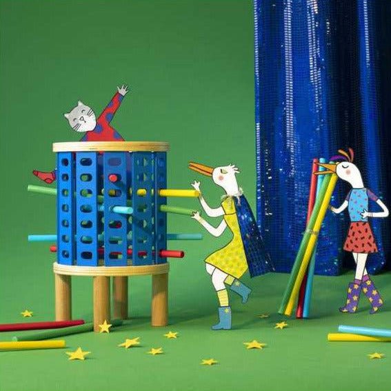 Boem! Speel samen of tegen elkaar, allemaal samen tegen de Giga Bom! Giga Bomb Les Loufoques van Moulin Roty is een houten gezelschapsspel dat niet veel uitleg nodig heeft en iedereen weet te verwonderen om mee te spelen. Dit kleurrijke behendigheidsspel is leuk voor het hele gezin vanaf 4 jaar.