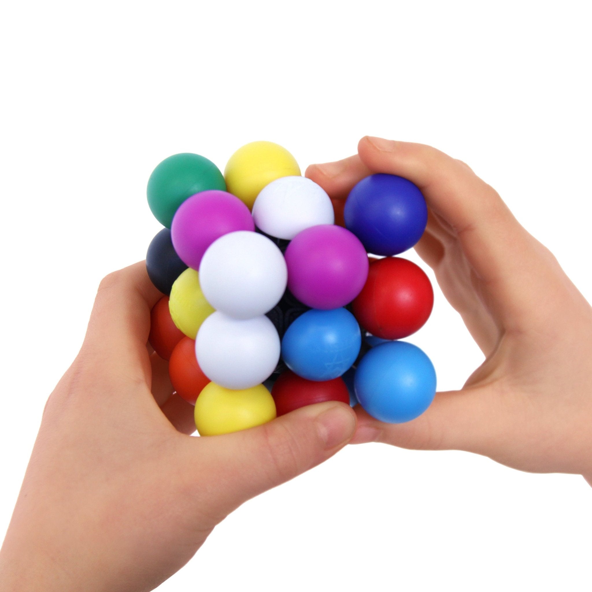 Er zit iets magisch in spellen die je eerst lijken te doorgronden, maar die je dan toch telkens opnieuw uitdagen. De Eureka Molecube is zo’n breinbreker. Een kubus opgebouwd uit 26 kleine bolletjes, allemaal perfect rond en toch stevig met elkaar verbonden. Deze kleurrijke en originele rubik's cube draait moeiteloos, alsof hij je uitnodigt om hem nog één keer te proberen, en daarna nog eens. Die zachte klik in elke draai voelt bijna als een bevestiging: je zit op het juiste spoor… of net helemaal niet.
