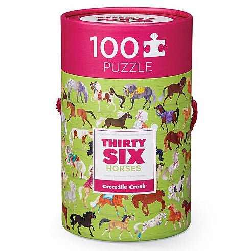 Puzzel In Tonnetje 36 Paarden - 100 Stukjes - Legpuzzels Crocodile Creek - In den Olifant