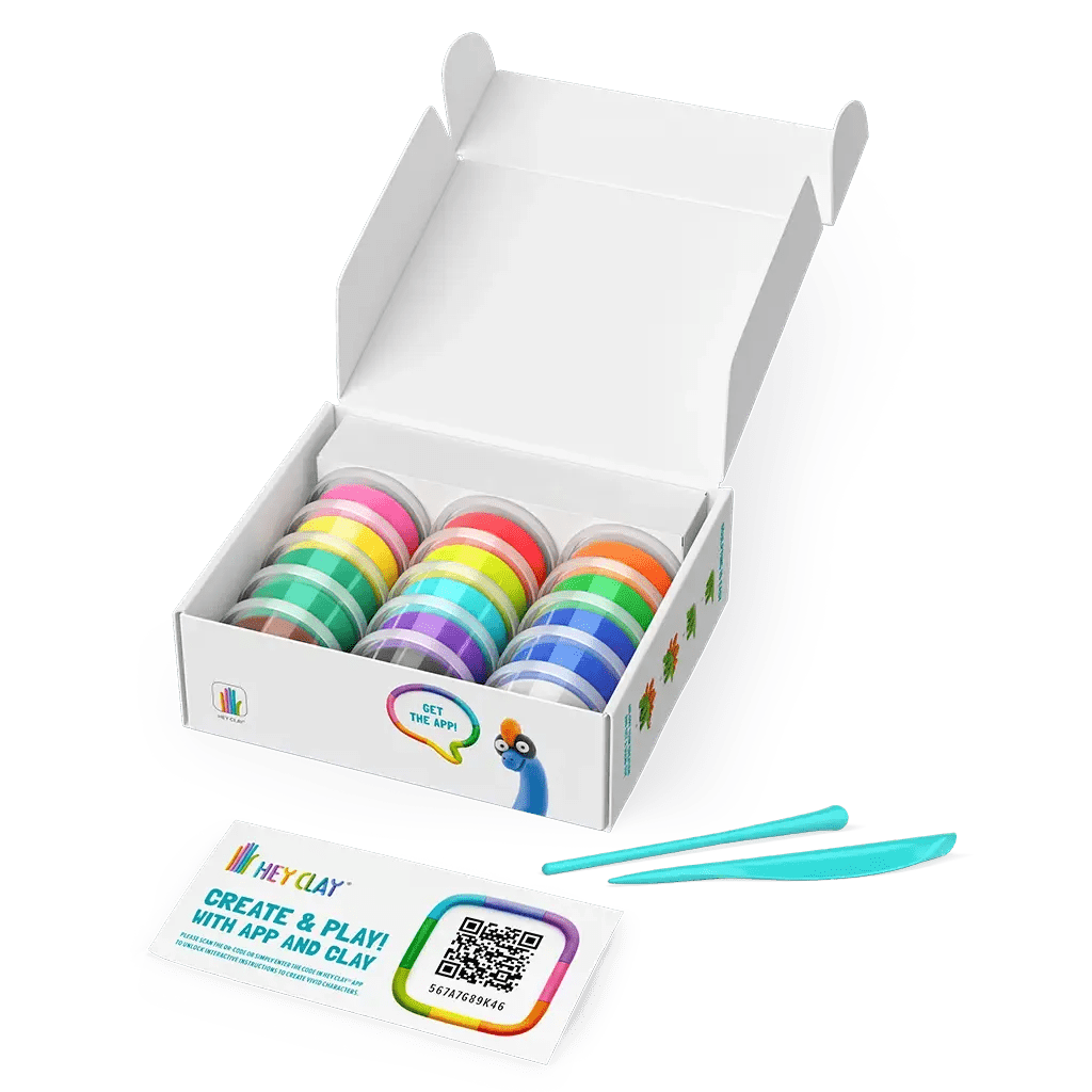 Hey Clay is een unieke combinatie van klei die niet plakt en een leuke app die kinderen op verschillende manieren in creativiteit onderdompelt. Nodig iedereen, jong en oud, uit om te kneden, creëren, spelen en verwonderen met deze kant-en-klare boetseersets van zachte, luchtdrogende klei in alle kleurtjes van de regenboog.