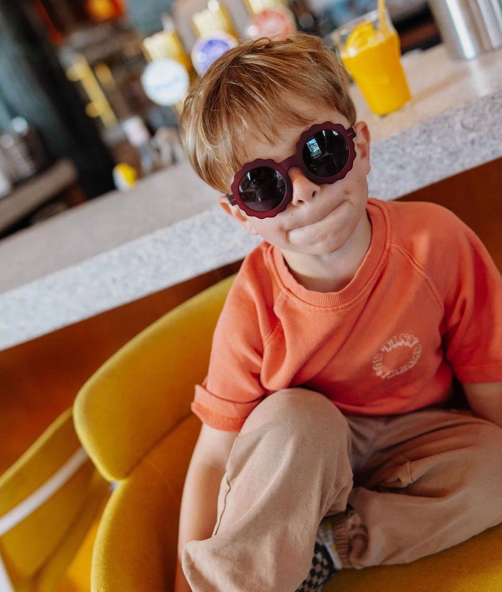 Kinderogen zijn gevoeliger voor zonlicht dan die van volwassenen, net daarom worden we zo blij van deze Chamy Plum kinderzonnebril van het Franse Hello Hossy. Dit zomeraccessoire combineert serieuze UV-bescherming met een kleur die even sprankelt als een zomerdag op de Antwerpse kaaien.