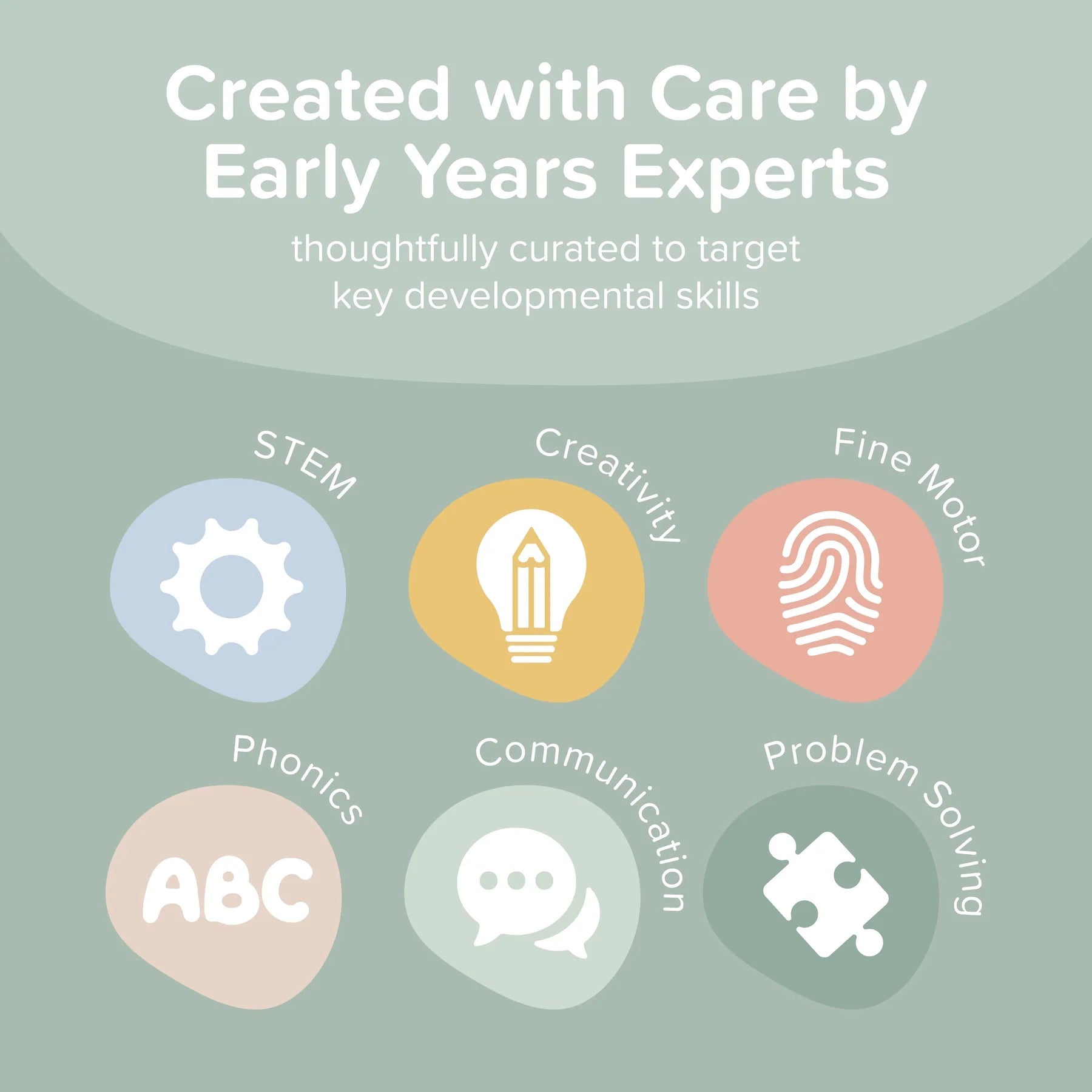 Het beste deel? Elke activiteit kan worden gemaakt met materialen en hulpmiddelen die je gemakkelijk in huis vindt. Ben je op zoek naar ideeën voor nog jongere kinderen? Check dan de Baby Activity Cards >
