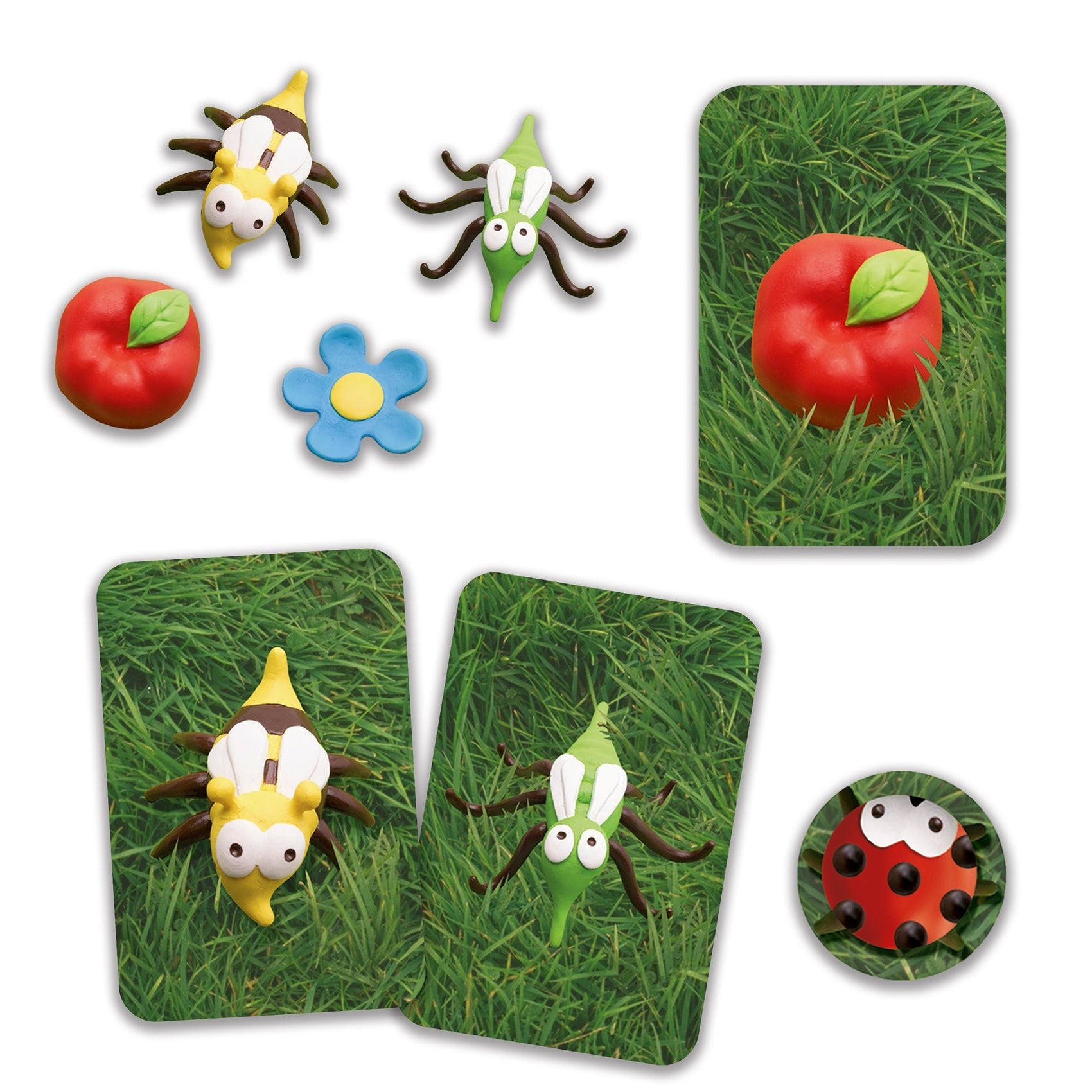 • Inhoud: 48 kaartjes, 25 lieveheersbeestje-fiches, 7 plastic figuurtjes (4 bijen, 1 mug, 1 bloem, 1 appel). Spelregels in 10 talen.