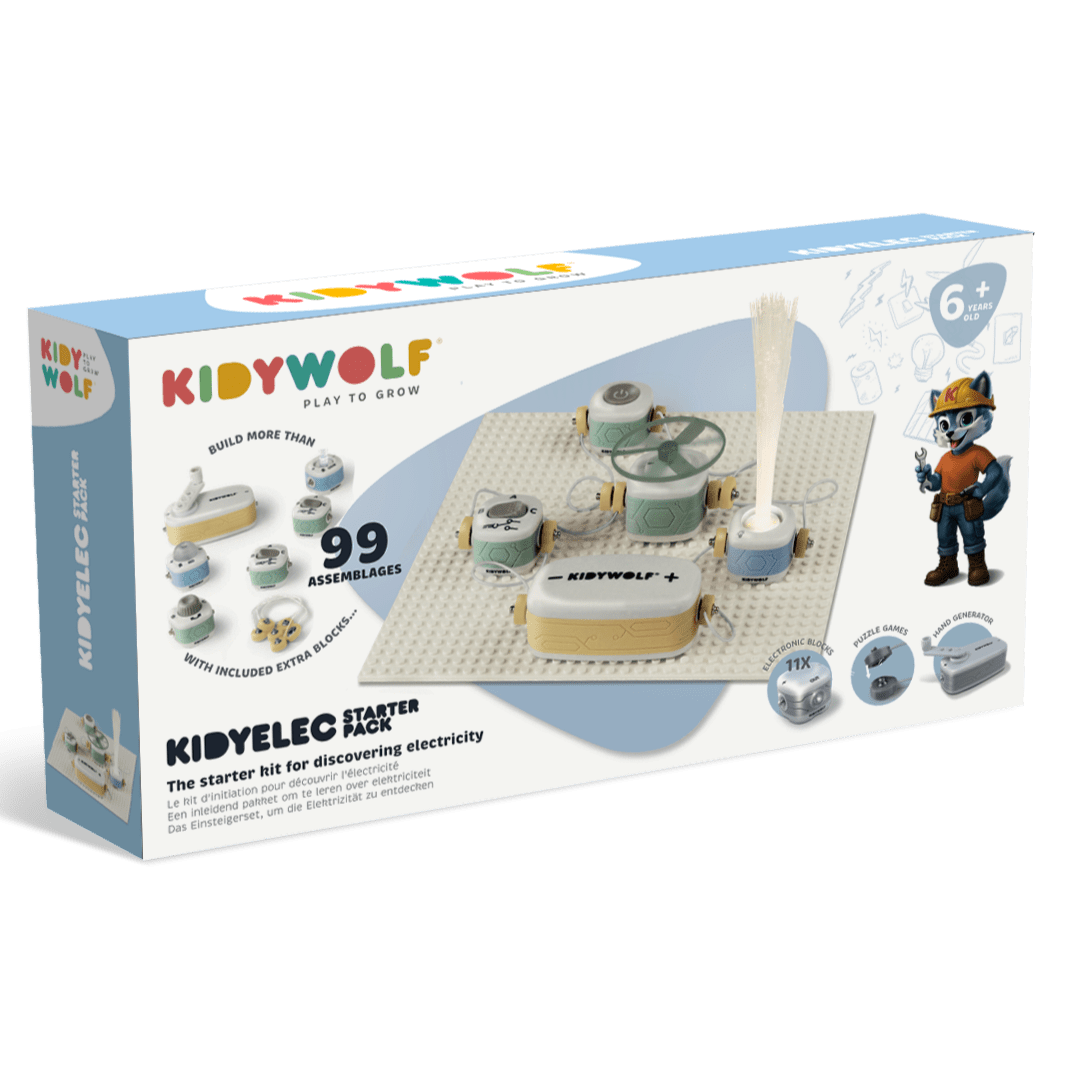 Wist je dat nieuwsgierigheid en zelf ontdekken samen de basis vormen voor levenslang leren? De KidyElec Starterkit van het Belgische Kidywolf neemt nieuwsgierige jonge makers vanaf 6 jaar mee op een reis door de wereld van elektronica, circuits bouwen, leren en logica maar dan op een speelse manier. Geen saaie handleidingen of droge theorie, maar een compleet avontuur waarin kinderen zelf schakelingen bouwen, licht en geluid ontdekken en hun eigen ideeën tot leven brengen.