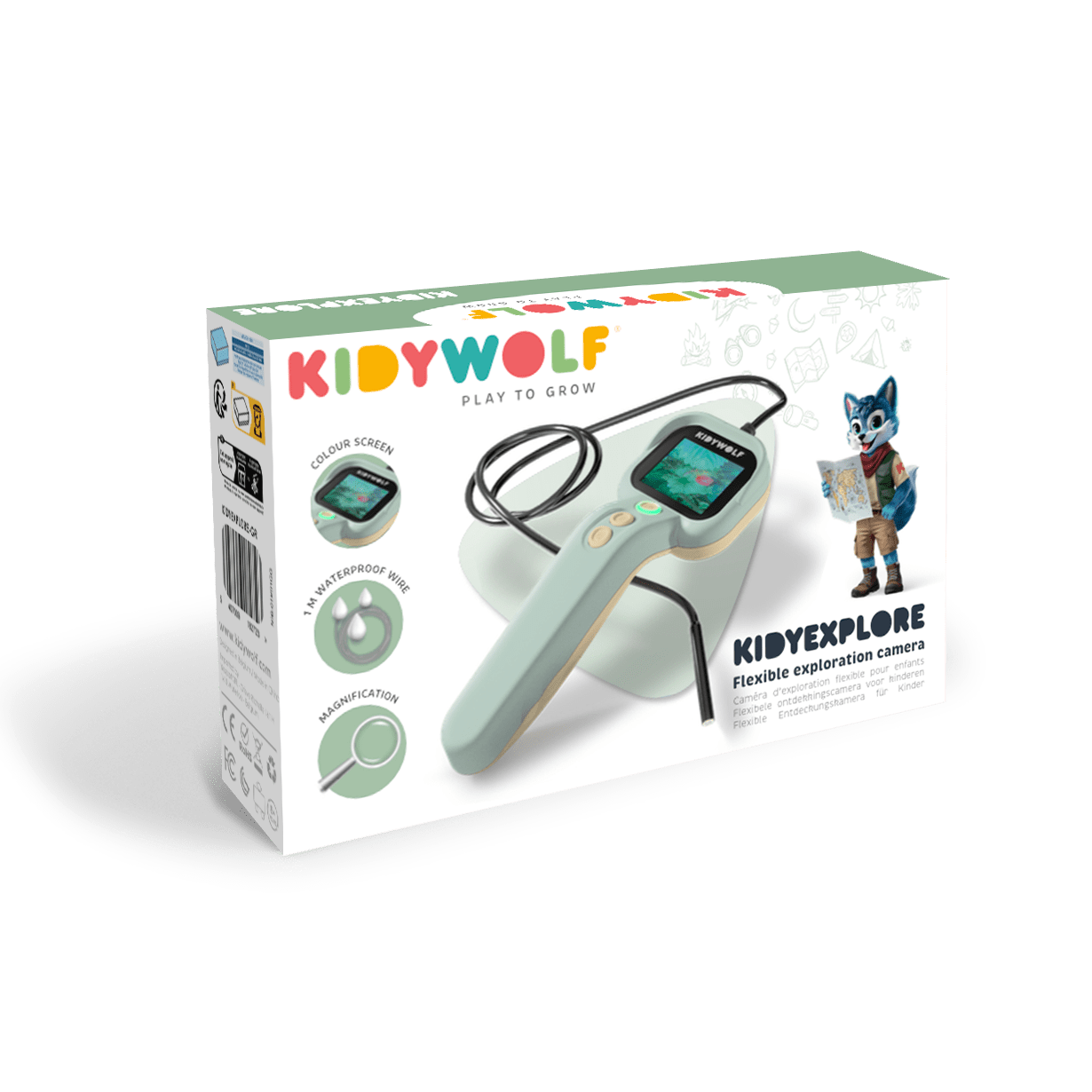 Zonder wifi of app is het een eenvoudig, stimulerend en veilig observatie-instrument dat hun nieuwsgierigheid en ontdekkingsdrang prikkelt, de kleine camera is waterproof en hangt aan een kabel van 1 meter zodat je ook in kleine hoekjes of over water kan kijken. De Kidyxplore is een cadeau dat lang meegaat, dankzij de hoogwaardige materialen en het doordachte ontwerp. Een perfecte metgezel voor zowel buiten in het park als binnen bij het kijken naar het raam of een terrarium.