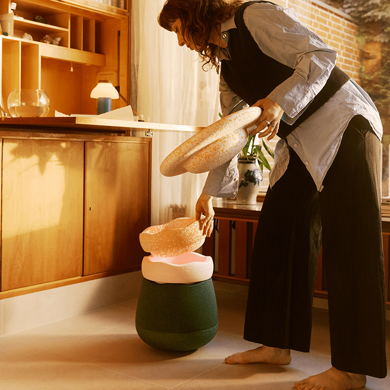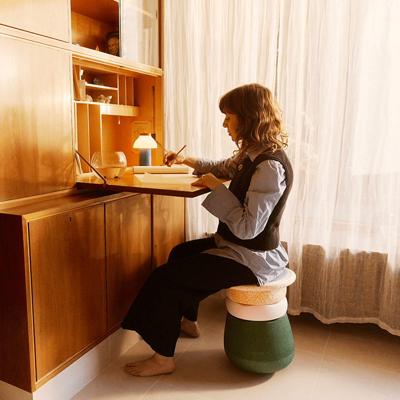 Deze set is een investering in de kindertijd, het is een multifunctioneel item leuk om op te zitten als kruk die je in hoogte kan verstellen en dus ook met je meegroeit maar ook fijn om te gebruiken in open-ended play én dankzij de holle ruimte binnen in de Stapelstein base kan je er ook nog eens speelgoed in kwijt. Heerlijk toch?