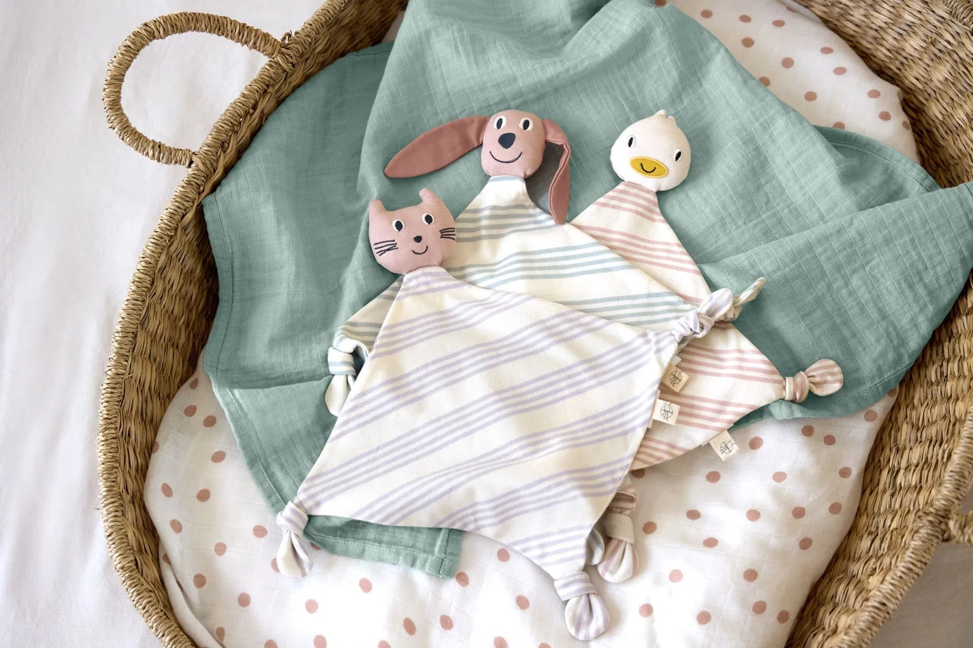 Gewatteerde figuurtjes en geknoopte uiteinden stimuleren de tastzin en zintuiglijke waarneming. Ook leuk om cadeau te doen voor een babyshower of te geven als kraamcadeau.