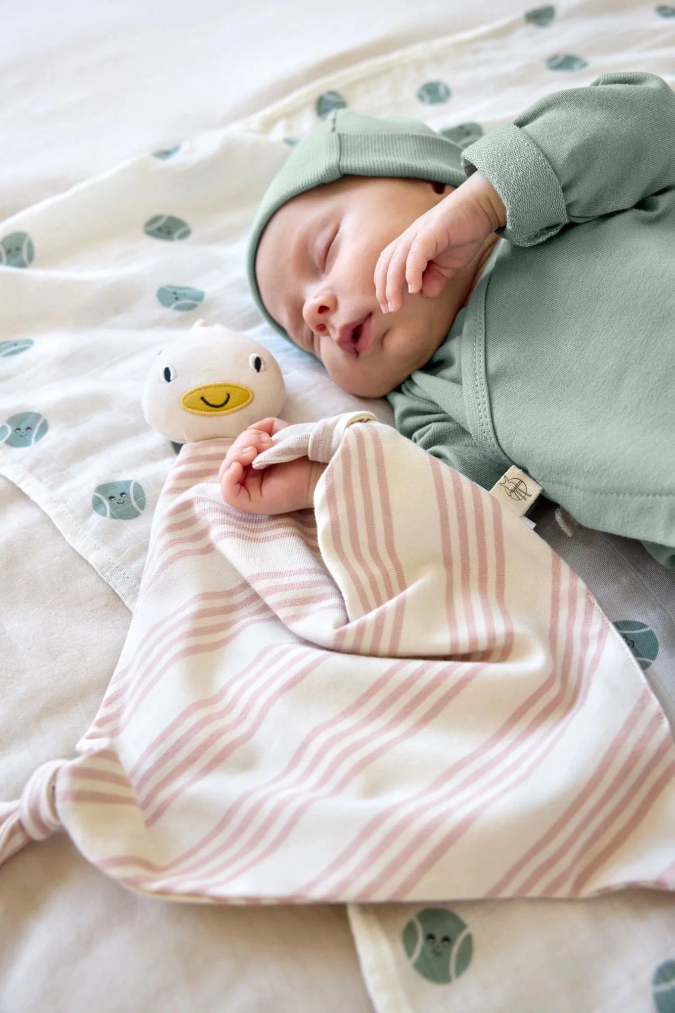 • Gestreept knuffeldoekje met eendje, biedt comfort en geborgenheid
