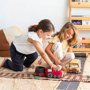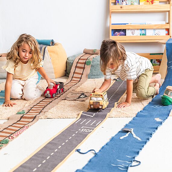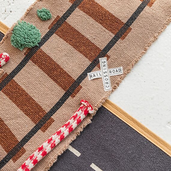 Met gevlochten koorden rond de randen kan het gemakkelijk worden opgerold en vastgemaakt met het treinvormige kussen, zodat je dit speelgoed ook perfect kan meenemen voor avonturen onderweg!