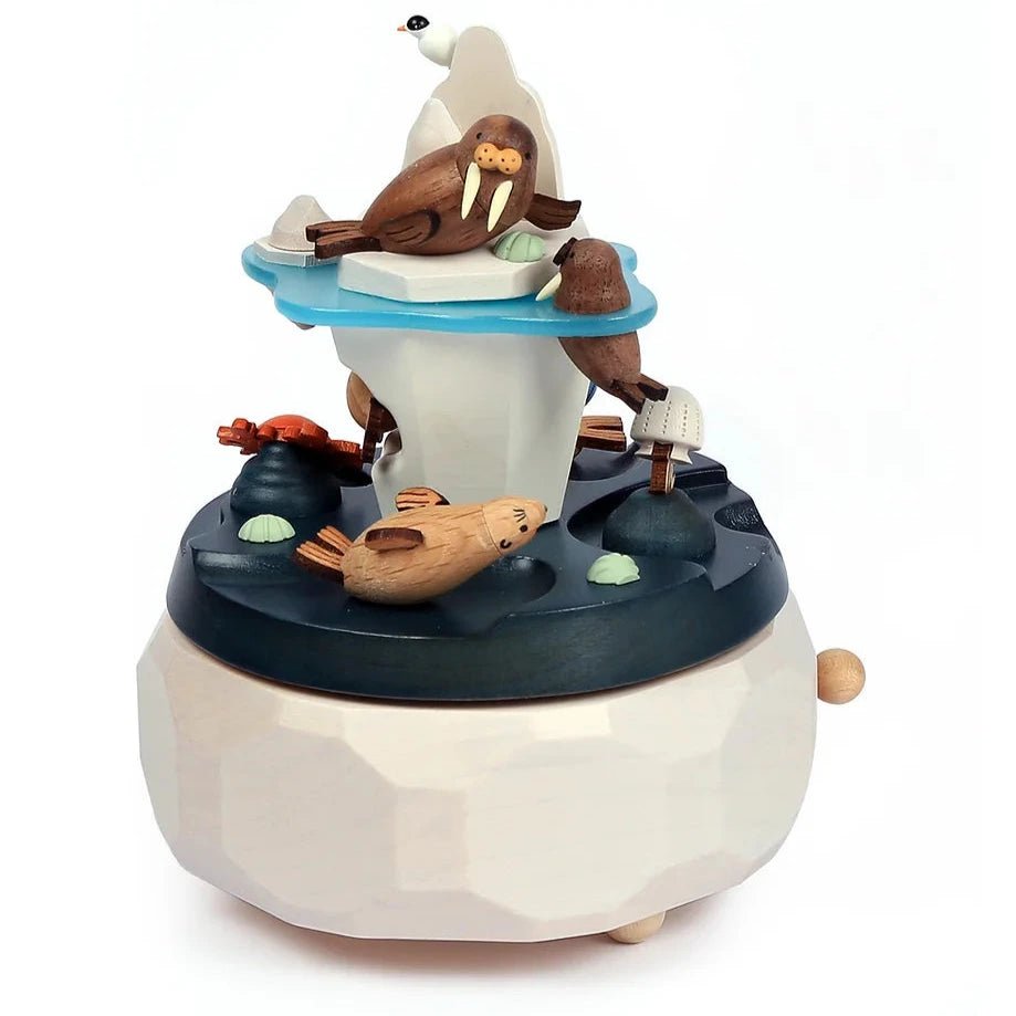 Van dino's tot de zee. Van ooievaars tot walvissen. En van safari tot diep in de ruimte. De houten muziekdozen worden handgemaakt door ambachtslieden in beperkte oplage, met sankyo mechanisme en zijn voorzien van een uit en aan-knop. Stuk voor stuk designs die niet alleen een magische werking op de allerkleinsten hebben maar iedereen weten te begeesteren.