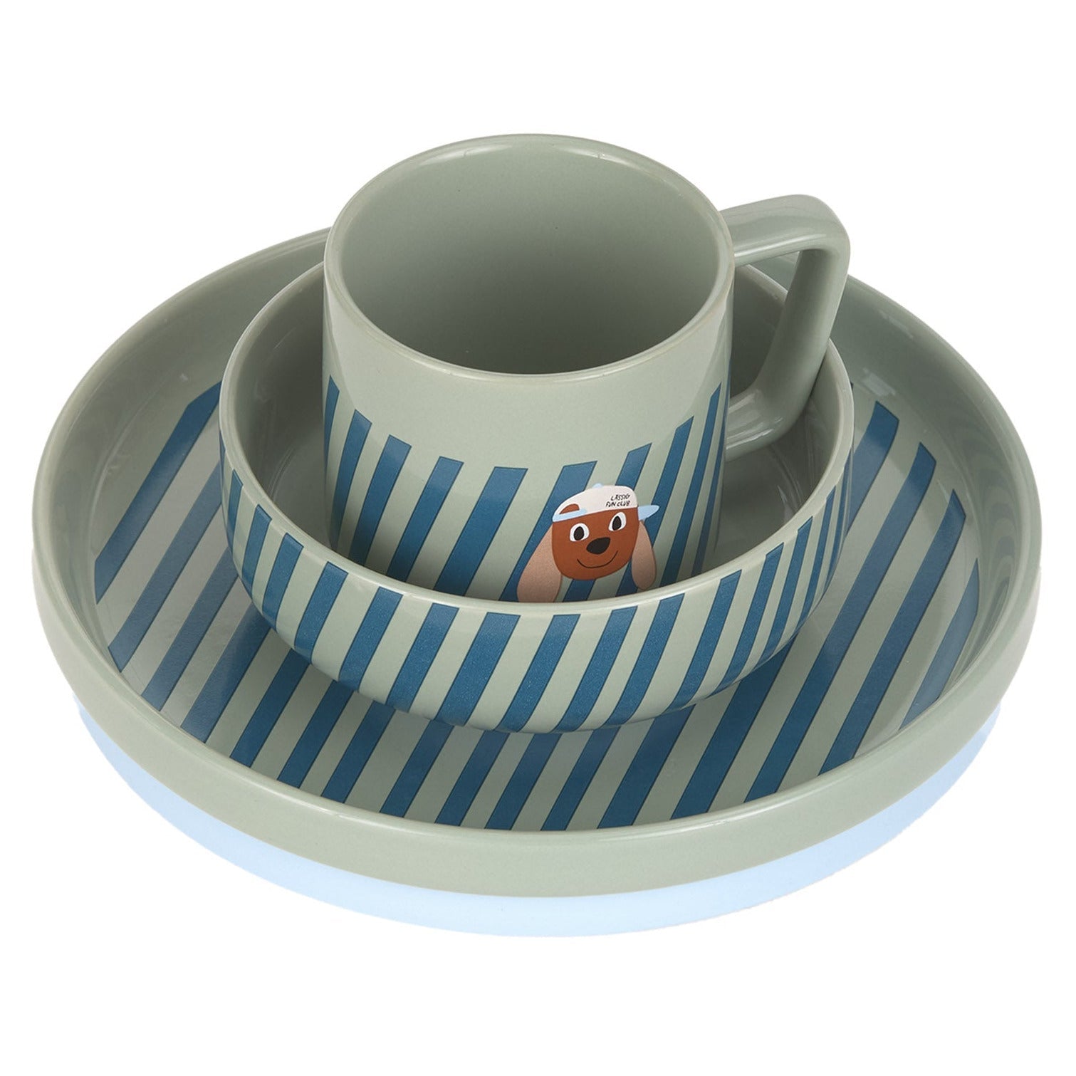 Een eigen servies, op maat van kleine handen, geeft zelfstandigheid. En laat dat nu net zijn waar deze porseleinen kinderservies set Dish Set Porcelain/Silicone Tiny Team Dog van Lässig zo mooi in slaagt.