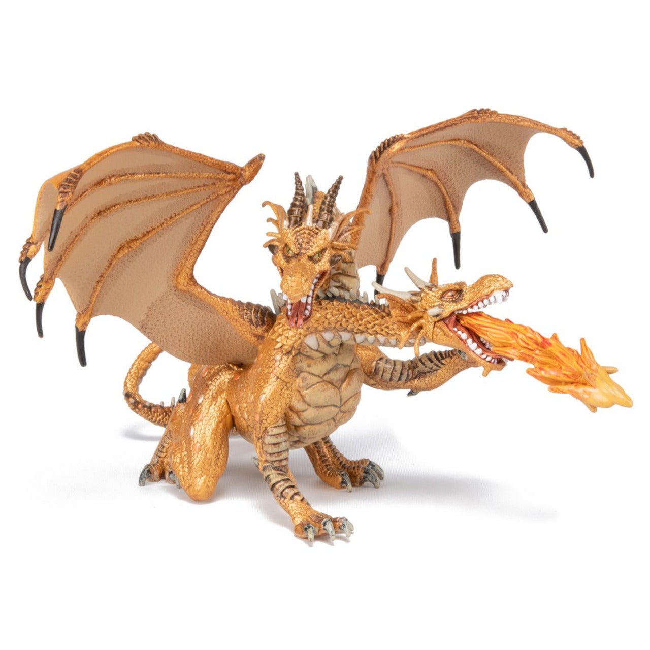 Met zijn twee vurige koppen, gouden schubben en gedetailleerde vleugels is dit handgeschilderde figuur een waar kunstwerk. Het maakt deel uit van Papo's Fantasy & Heroes‑serie en is ontworpen voor avontuurlijke rollenspellen.