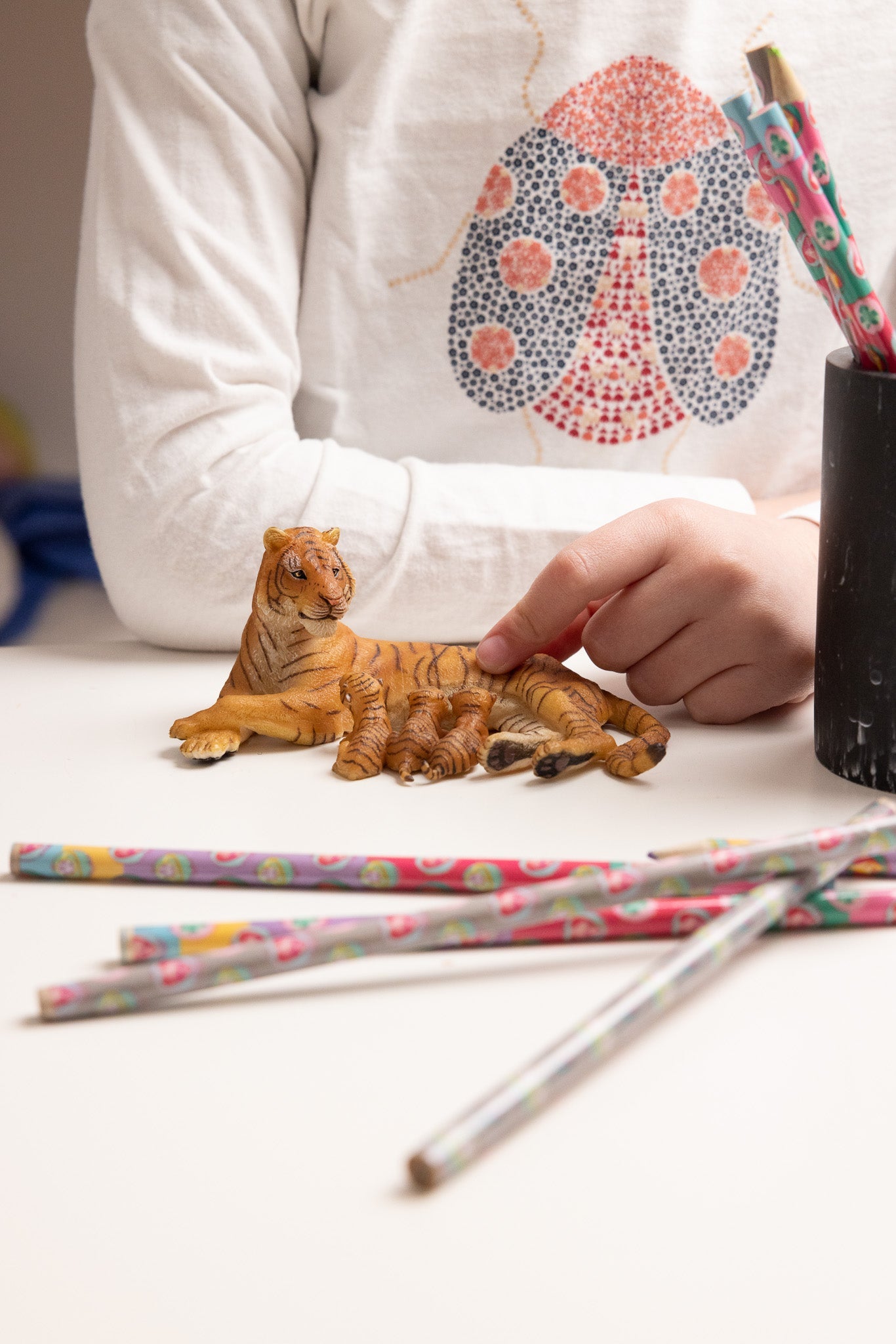 Dit gedetailleerde speelfiguur liggende tijgerin die haar welpen zoogt stimuleert fantasierijk spel en laat kinderen spelenderwijs kennismaken met bijzondere dieren en hun leefomgeving. Ideaal voor educatief spel of om een dierenverzameling tot leven te brengen.