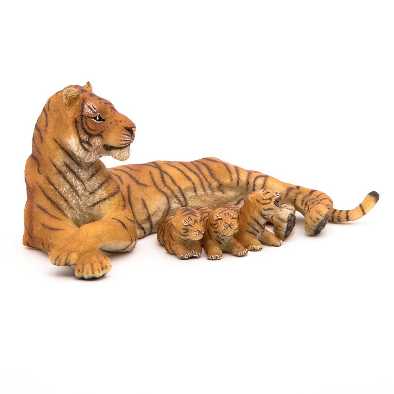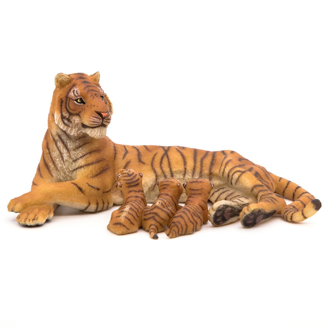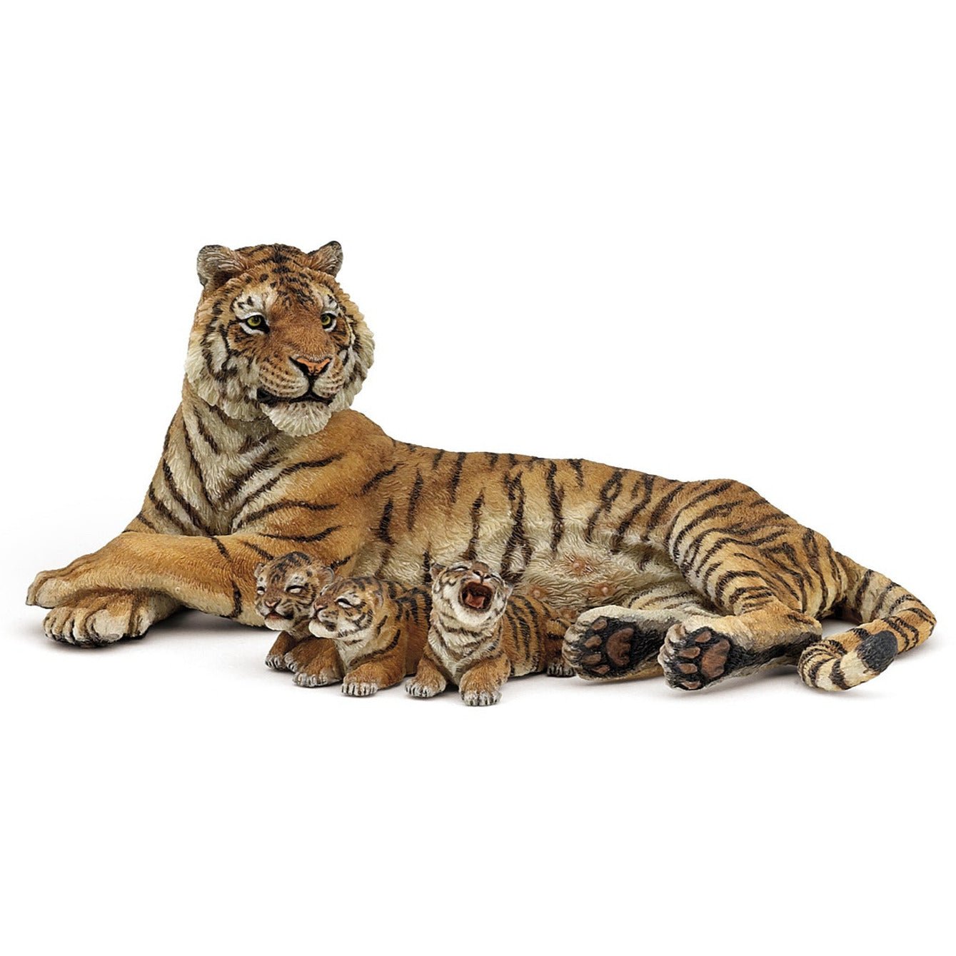 Liggende tijgerin met 3 zoogende welpen - Speeldieren Papo - In den Olifant