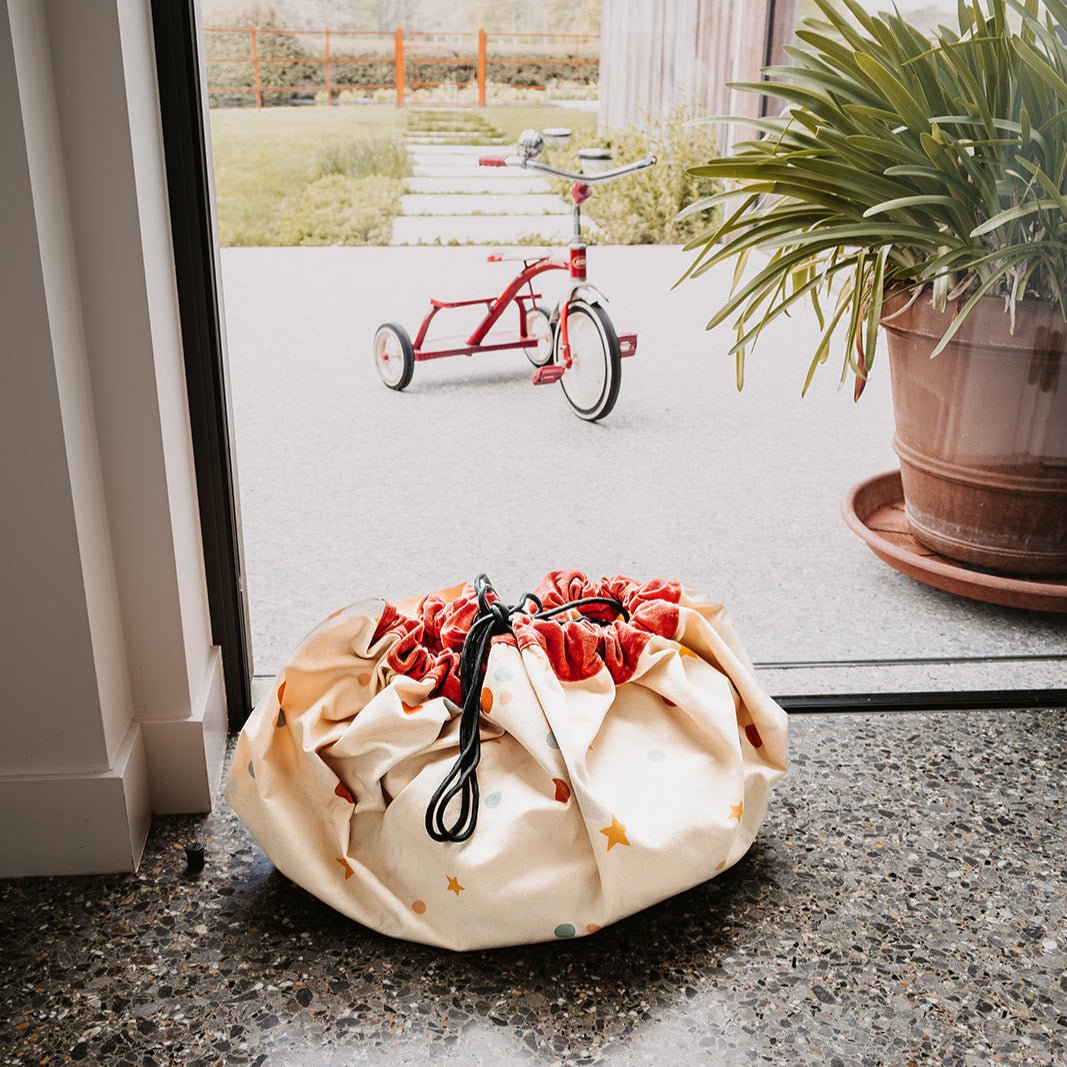 Spelen en opruimen gaan hand in hand bij het Belgische Play&Go. Hun prachtige designs veroveren kinderkamers in heel de wereld. De originele bedrukte speelgoedopbergzakken zijn dé parenthack van velen. Nieuw zijn hun EEVVAA speelmatten die zorgen voor nog meer speelplezier.