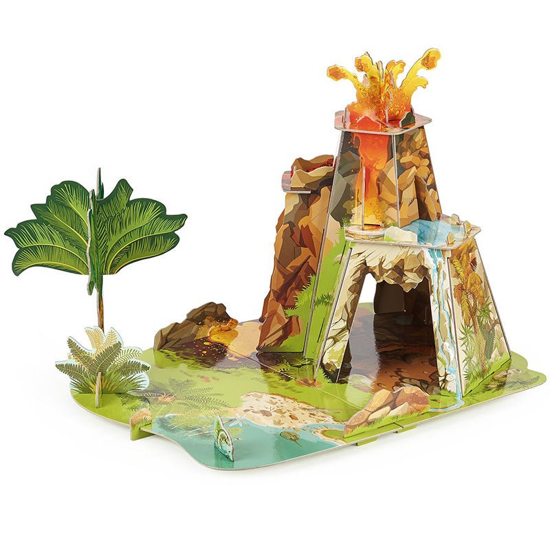 • Met een grot, uitbarstende vulkaan, vijver en planten