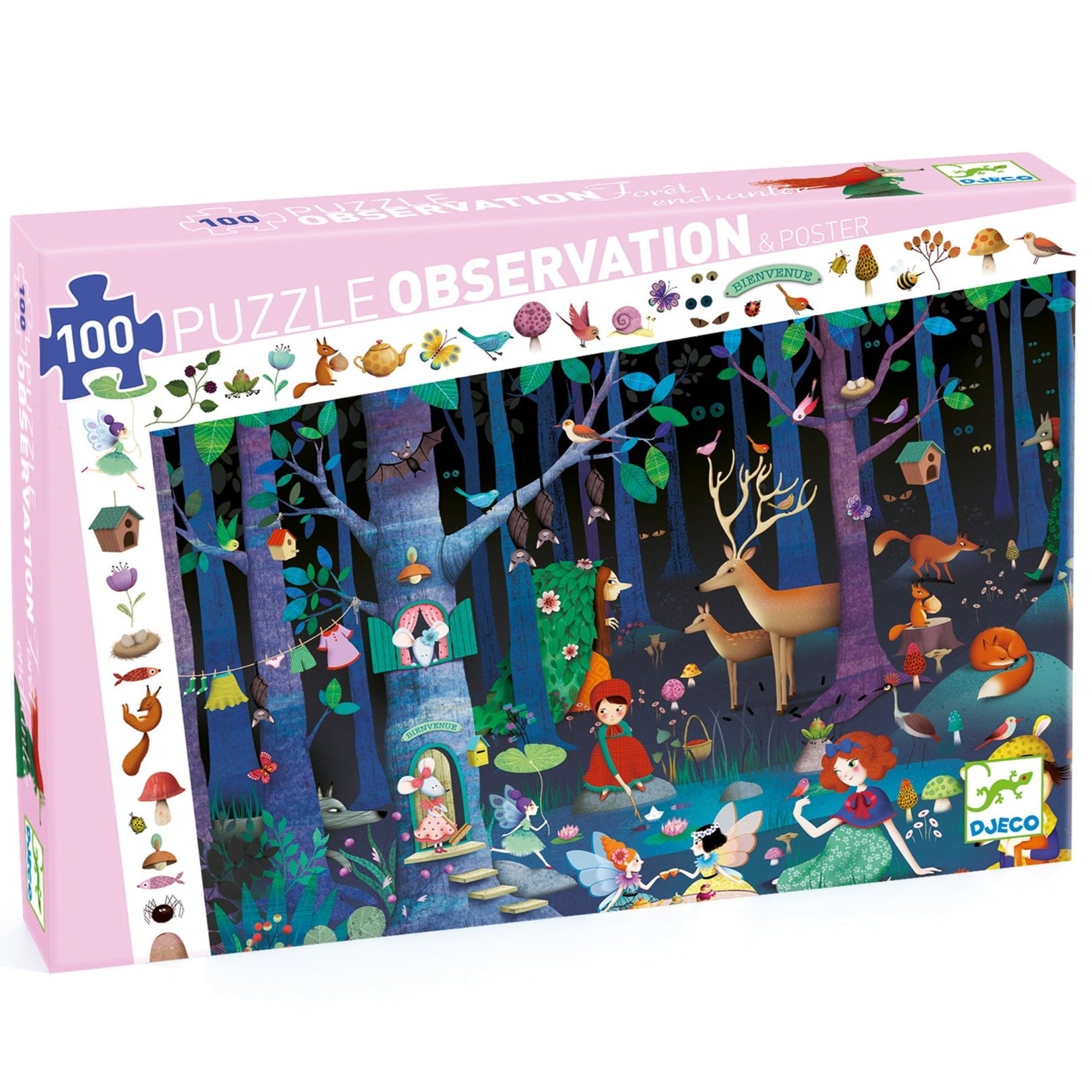 Observatiepuzzel Het betoverende bos - 100 stukjes + poster - Legpuzzels Djeco - In den Olifant