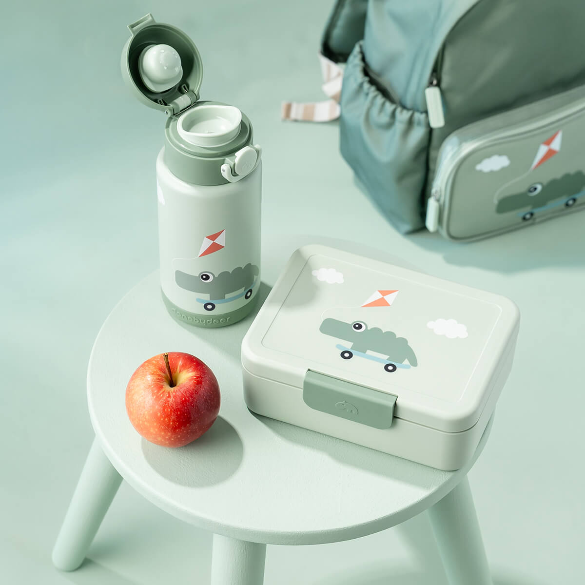 Deze geïsoleerde RVS drinkfles Playground Green is ontworpen om mee te gaan in het dagelijkse leven van kleintjes: eerste schooldagen, valpartijen, rommelige momenten en alle avonturen onderweg. Kleine handjes openen de drinkfles eenvoudig dankzij het drukknopdeksel, terwijl de siliconenafdichting lekjes voorkomt en het praktische handvat alles makkelijker maakt om mee te nemen.