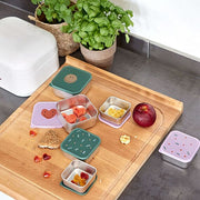 De snackboxen hebben niet alleen vrolijke designs, maar houden fruit, groenten, gebak en dergelijke ook lang vers tijdens het volgende uitstapje. Dankzij het deksel van polypropyleen blijven de doosjes goed gesloten en is de inhoud veilig opgeborgen. Als de inhoud op is, kunnen de doosjes veilig in de vaatwasser. Omdat ze drie verschillende formaten hebben, kunnen de snackboxen in elkaar gestapeld worden om ruimte te besparen. Deze kleine snackboxen zijn ideaal voor de kinderopvang, kleuterschool of familie-uitstapjes en staan garant voor puur genot tijdens het snacken.
