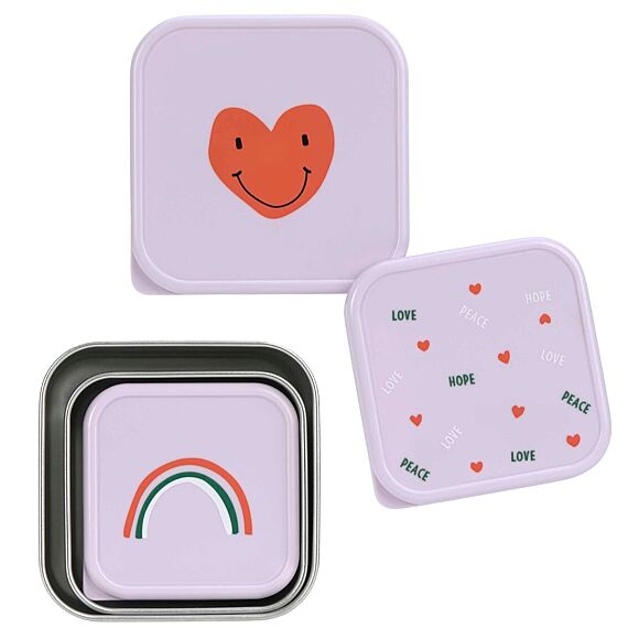 Stalen Snackdozen Happy Rascals Heart Lavender | Set Van 3 - Lunchboxen en snackdoosjes Lässig - In den Olifant