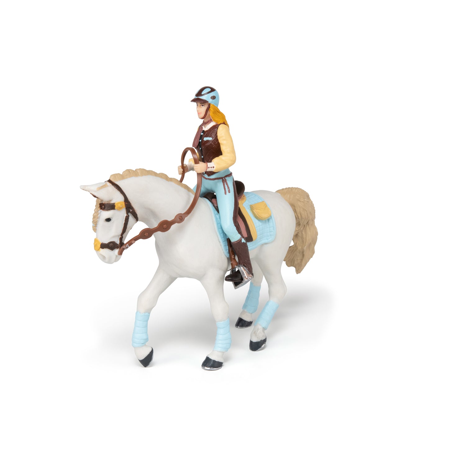 Het witte paard Blue trendy rider's horse van Papo hoort bij de blauwe Fashion Ruiter (apart verkrijgbaar) maar het is veel meer dan een gewoon speeldier. Van de sierlijke houding tot de glanzende manen, elk detail is met uiterste zorg gemaakt om een levensechte uitstraling te geven. Papo staat bekend om hun vakmanschap: elk speelfiguurtje wordt zorgvuldig met de hand beschilderd en gecontroleerd, zodat kinderen een duurzaam en prachtig speelgoed in handen hebben dat lang meegaat.