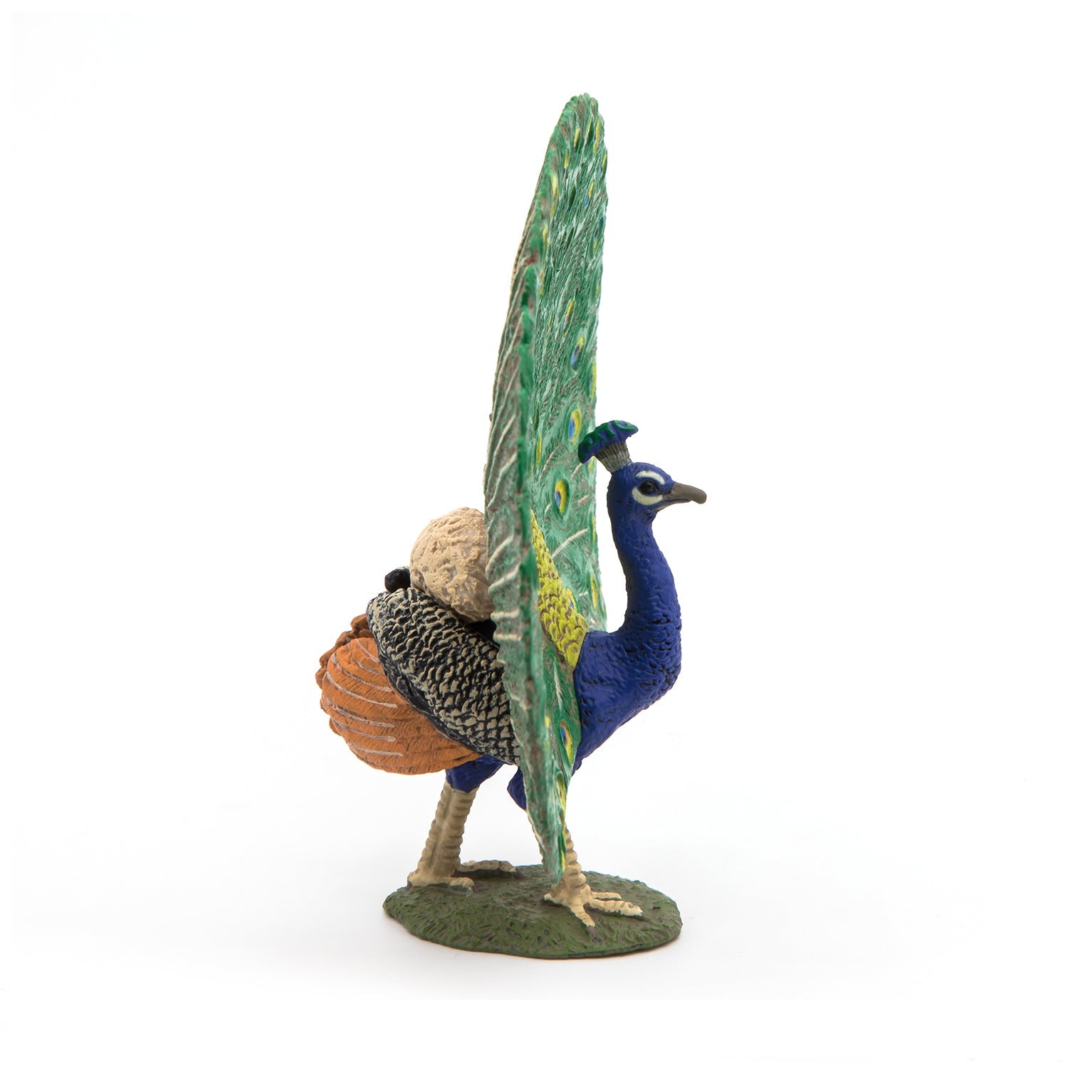 De Papo Pauw brengt de pracht van de natuur in je speelkamer. Zijn uitgespreide veren, heldere kleuren en sierlijke houding maken hem een prachtig middelpunt in fantasiespellen of als educatief diertje om over vogels en hun gedrag te leren. Kinderen kunnen hem combineren met andere dieren of gebruiken in diorama’s en verzamelingen.