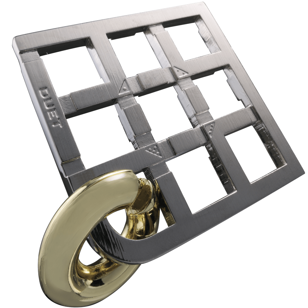 De Huzzle Cast Puzzle Duet is een uitdagende puzzel die je brein op de proef stelt. Deze breinbreker heeft meerdere opdrachten: probeer de ring (eigenlijk 2 magnetische ringen) los te krijgen en weer vast te maken. Lukt dat? Hang dan de ring aan 1 van de 4 hoeken van het raster (aangeduid van 1 tot 4). Bepaal zelf je moeilijkheid.