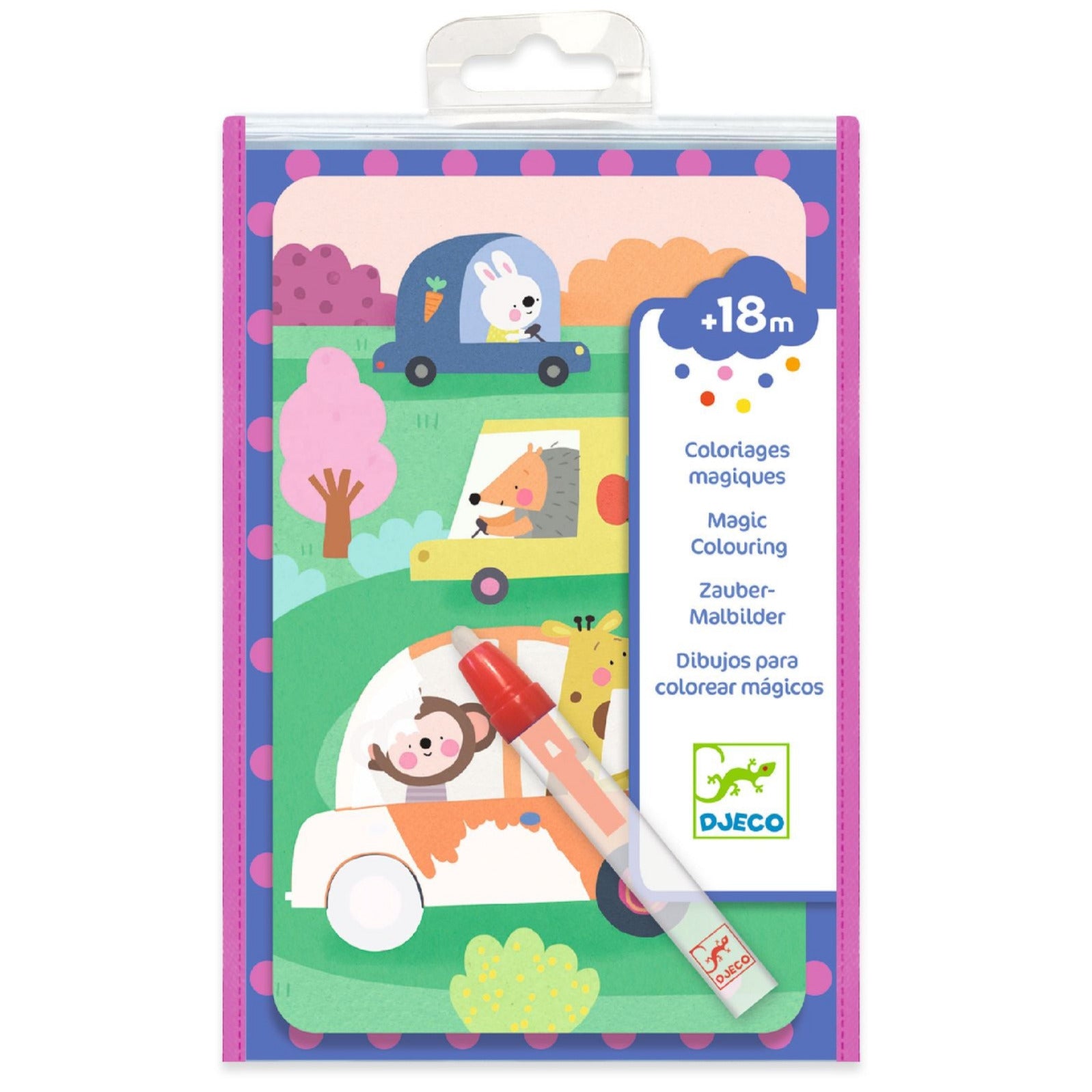 Dit kleurboekje En Route is compact en magisch want je kan de prenten kleur geven zonder echte stiften en kleurpotloden. Hoe werkt het dan? Je kleurt de witte delen in met de bijgeleverde waterpen om te ontdekken wat er achter verborgen zit. Het lijkt wel magie: motieven verschijnen en veranderen van kleur! De kleurplaten drogen en het kind kan opnieuw beginnen! Goed voor eindeloos veel kleurplezier, een fijne offline activiteit en compact genoeg om makkelijk overal mee naartoe te nemen.