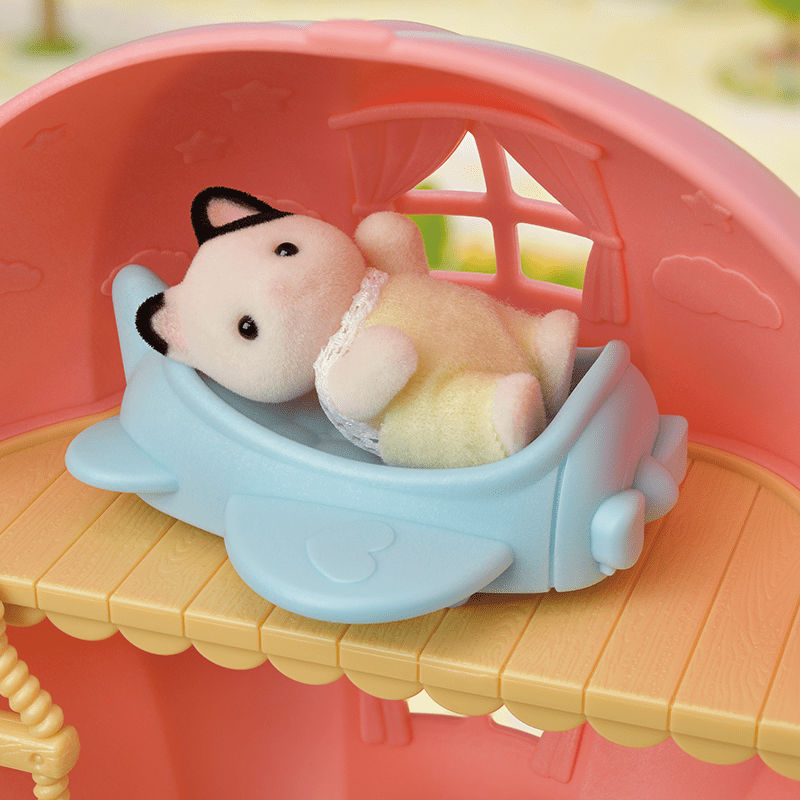 De Sylvanian Families baby's hebben onzettend veel speelplezier hebben met deze luchtballon speelset. De set is inclusief baby Tuxedo kat en een speelhuisje met accessoires.