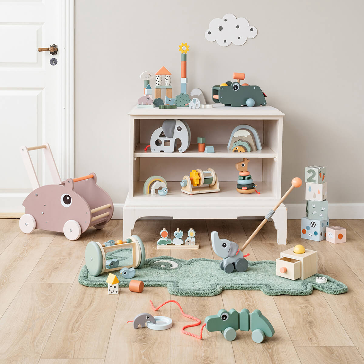 • Stevig houten duwspeelgoed: duurzaam Deens design