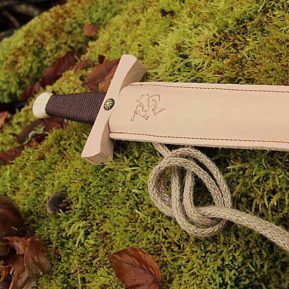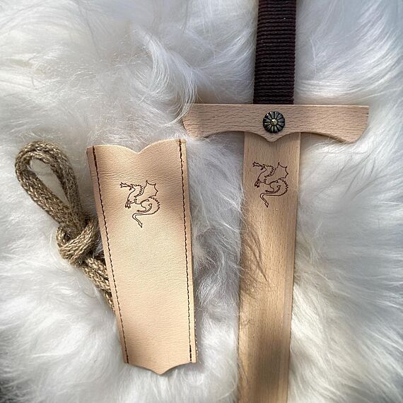 • Stoer houten ridderzwaard Dragon Sword met lederen houder