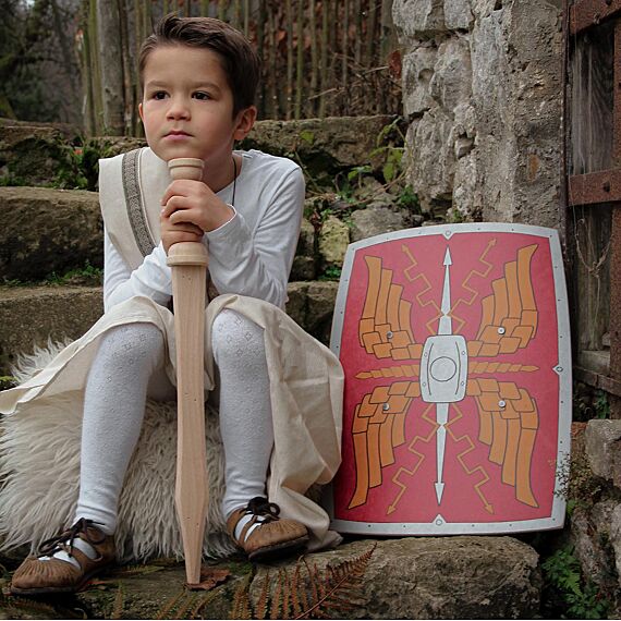Romeins zwaard Aurelius in een wondermooie creatie van de speelgoedfabrikant VAH en heerlijk houten speelgoed dat meteen tot de verbeelding spreekt. Het zwaard is gemaakt van hout en is 48 cm lang. Het is gemodelleerd naar de gladius van Romeinse legionairs. Kies er een helm of schild bij en je bent klaar voor de strijd.