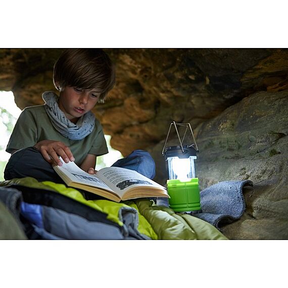 Hoogwaardig ontworpen Terra Kids campinglamp van Haba die robuust aanvoelt. Deze led-campinglamp heeft 6 leds, waardoor deze altijd zorgt voor voldoende verlichting. De lamp gaat aan, zodra de lampkop omhoog wordt getrokken. De lamp is zo ontworpen dat deze vriendelijk is voor de ogen en niet verblindt. Ideaal voor tijdens het kamperen, reizen in het donker, avonturieren tijdens de vakantie en zomermaanden en lezen in het donker. Materiaal: kunststof en metaal. Afmetingen: H13 cm gesloten, H19 cm uitgetrokken, ongeveer 9 cm in doorsnede. De campinglamp geef 40 lumen licht en heeft een brandduur van ongeveer 6 uur. Levering zonder batterijen (3x 1,5v AA).