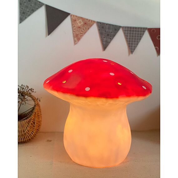 Met het nachtlampje grote paddenstoel rood, gaat een sprookjeswereld open! In het donker verspreidt het lampje een zacht en diffuus licht en plots wordt de slaap vatten zo veel makkelijker. Aan of uit, de rode paddenstoel blijft altijd een even mooi object.