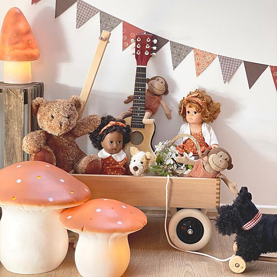 Over heel de wereld vind je fans van het Egmont Toys. Dit Belgisch merk creëert traditioneel speelgoed sinds 1994. Ieder ontwerp wordt met de hand geschilderd en dat geeft een originele retro look. De mooie handgemaakte nachtlampjes van Heico, vervolledigen het gamma en brengen een speciale feeërieke sfeer. Hun houten speelgoed zit boordevol verbeelding en zorgt voor uren lang speelplezier, bovendien staat het ook mooi in elk interieur dankzij de duurzame materialen en natuurlijke kleuren.