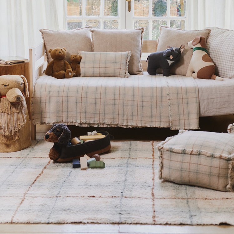 Mooie tapijten en kinderen in huis... het past wél samen dankzij Lorena Canals, opgericht in 1990. Dit Spaans decoratiemerk is gespecialiseerd in vloerkleden, poefs, kussens en speelse, woonaccessoires met bohemian vibes. Unieke wasbare stukken, handgemaakt, duurzaam en ethisch geproduceerd.