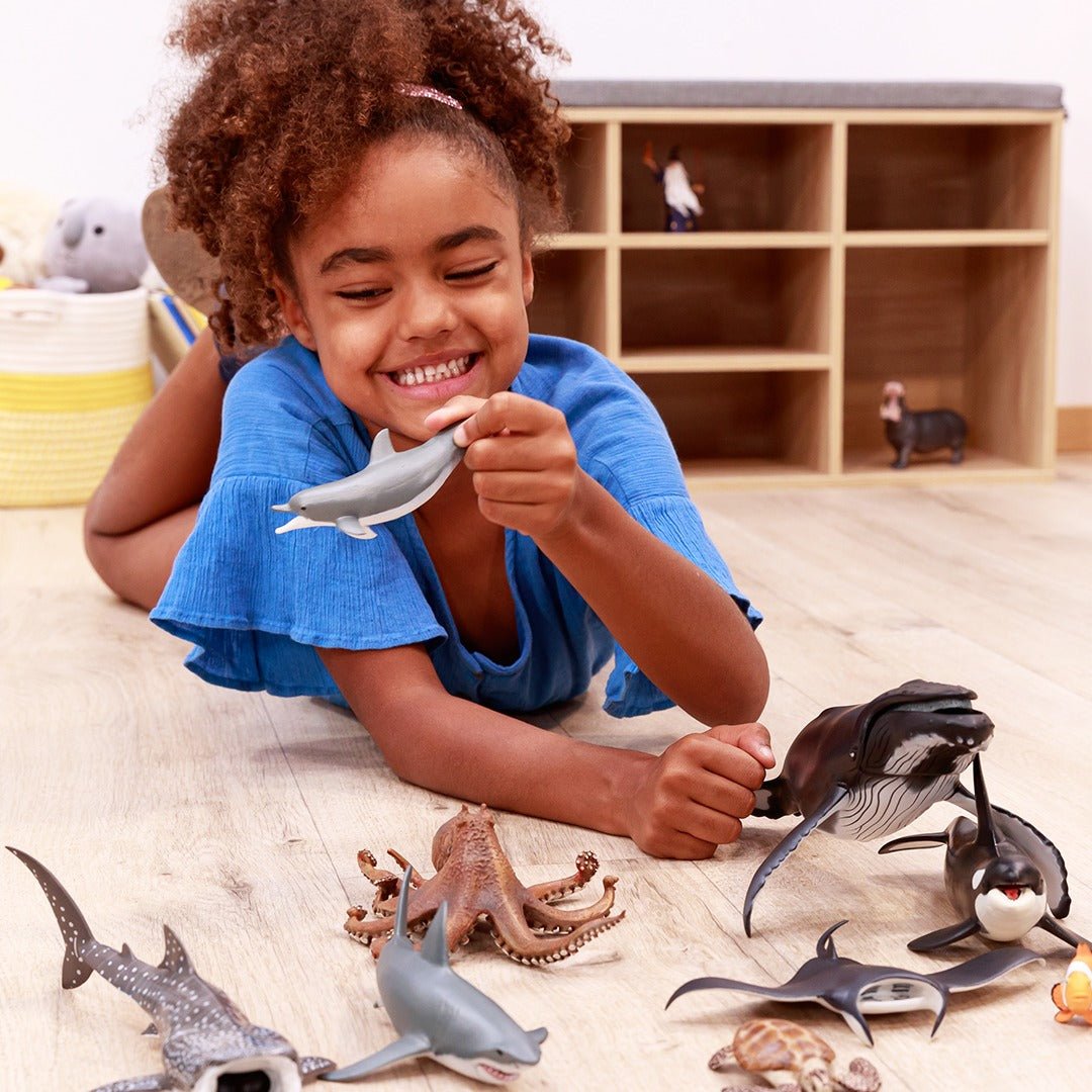 Duik met bultruggen, spring in de golven naast dolfijnen of word een duiker die de diepten van de oceaan kan verkennen op zoek naar prachtige exemplaren zoals de clownvis of de majestueuze mantarog. Dit duurzame speelfiguur stimuleert fantasierijk spel én laat kinderen spelenderwijs kennismaken met de wonderlijke wereld van de oceaan. Perfect voor educatief spel, je dierenverzameling of om onderwaterwerelden tot leven te brengen.