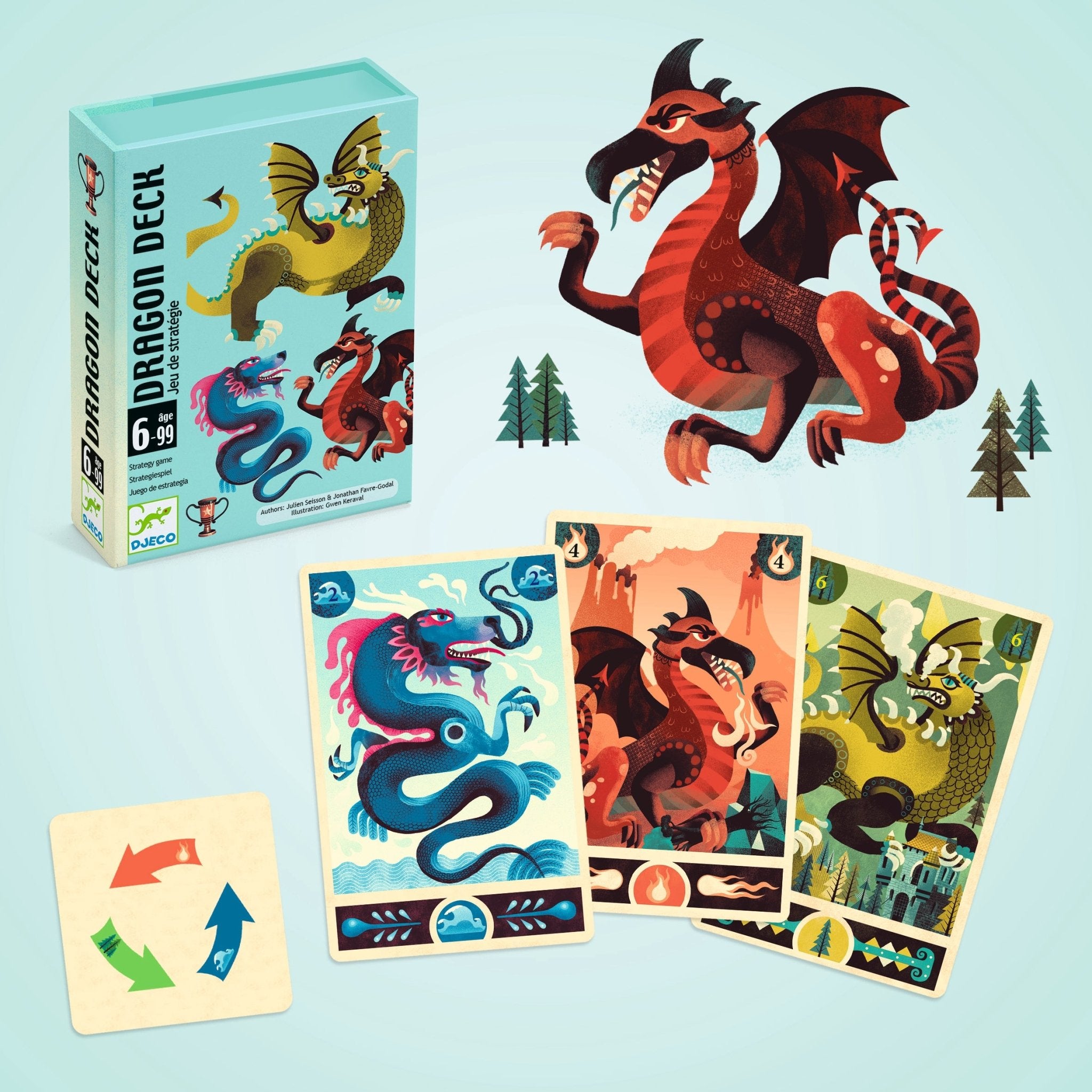 Dragon Deck by Djeco is a compact strategy card game for 2 players in which you assemble an army of dragons and battle against each other by making clever choices.