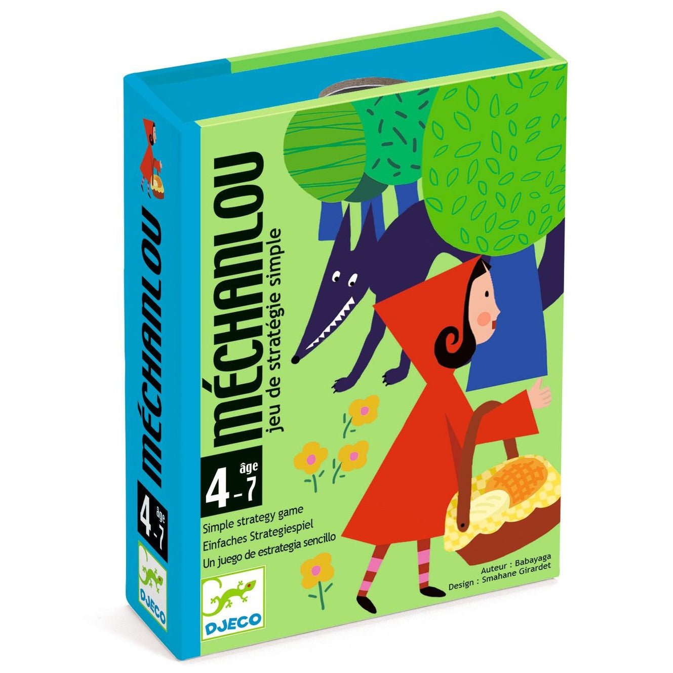 Djeco Mechanlou is a strategic card game for children aged 4 and up, where players relive the classic fairy tale of Little Red Riding Hood together at the table. In this compact Djeco card game for 2-4 players, you build your story by collecting cards that recreate the famous events from the fairy tale.