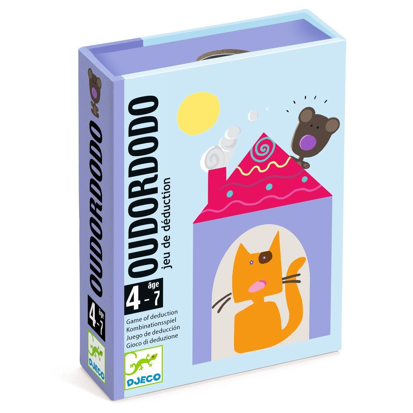 The Djeco Oudordodo card game is a fun, compact deduction game for young players aged about 4 to 7 years old, in which children learn to think logically together and through play.