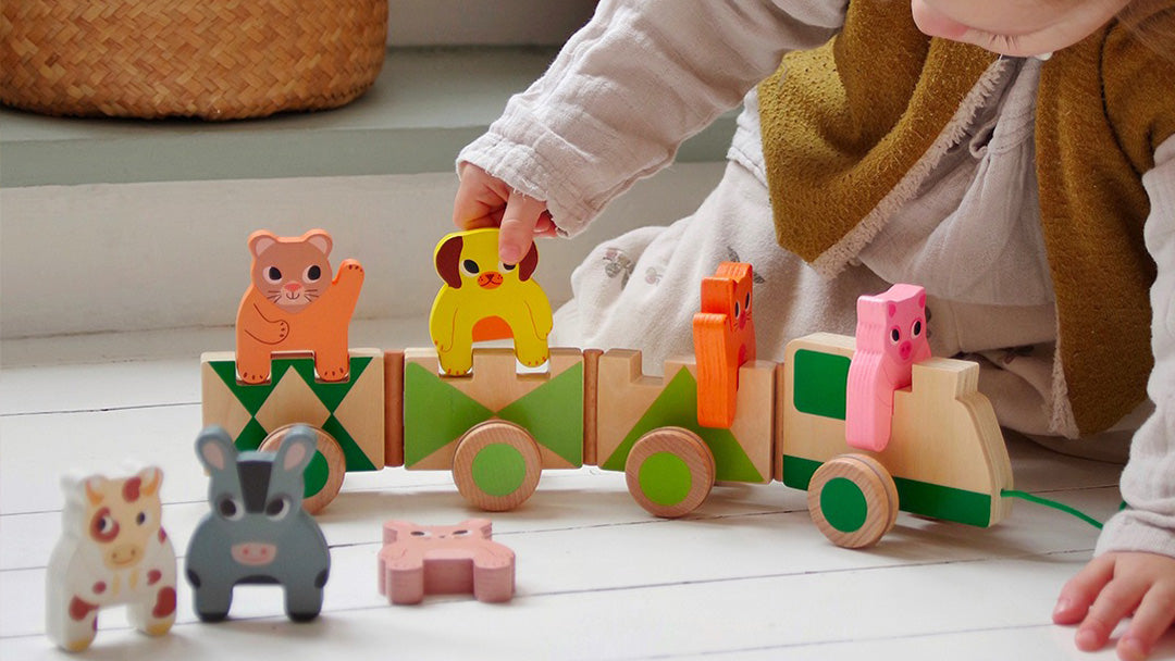 Djeco knows how to let babies discover through play . Think beautiful rattles in bright colors, fun stacking towers, and wooden baby toys that spark little hands' curiosity. Everything is made from high-quality, child-friendly materials like sustainable wood, soft textiles, and water-based paints, so parents have nothing to worry about.