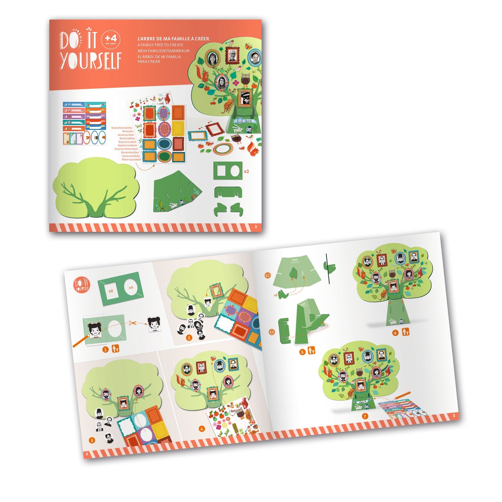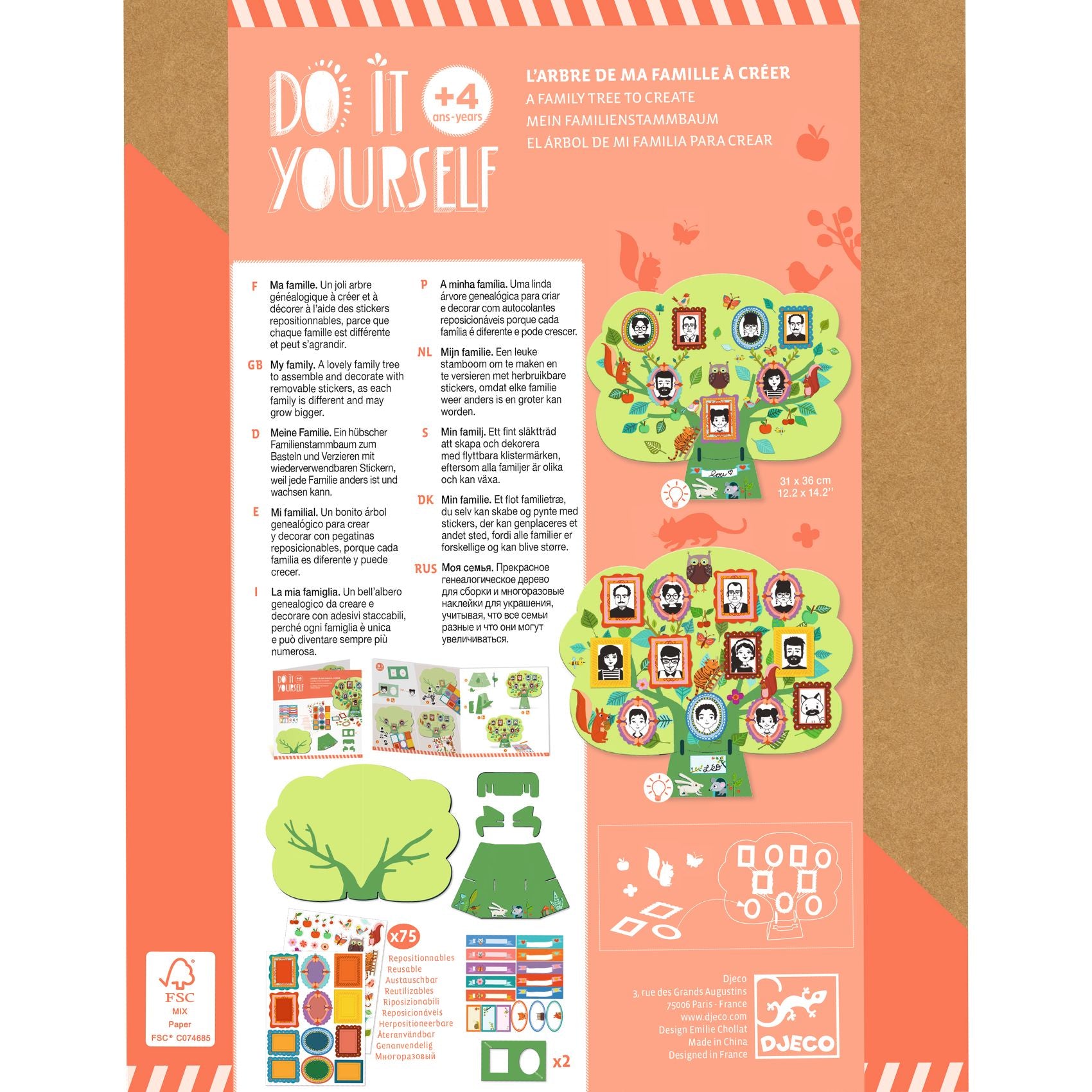 DIY Craft Kit "My Family" is a complete Djeco craft kit for creating a beautiful family tree and decorating it with the many included stickers. A creative activity for the whole family to create a beautiful, personalized work of art.