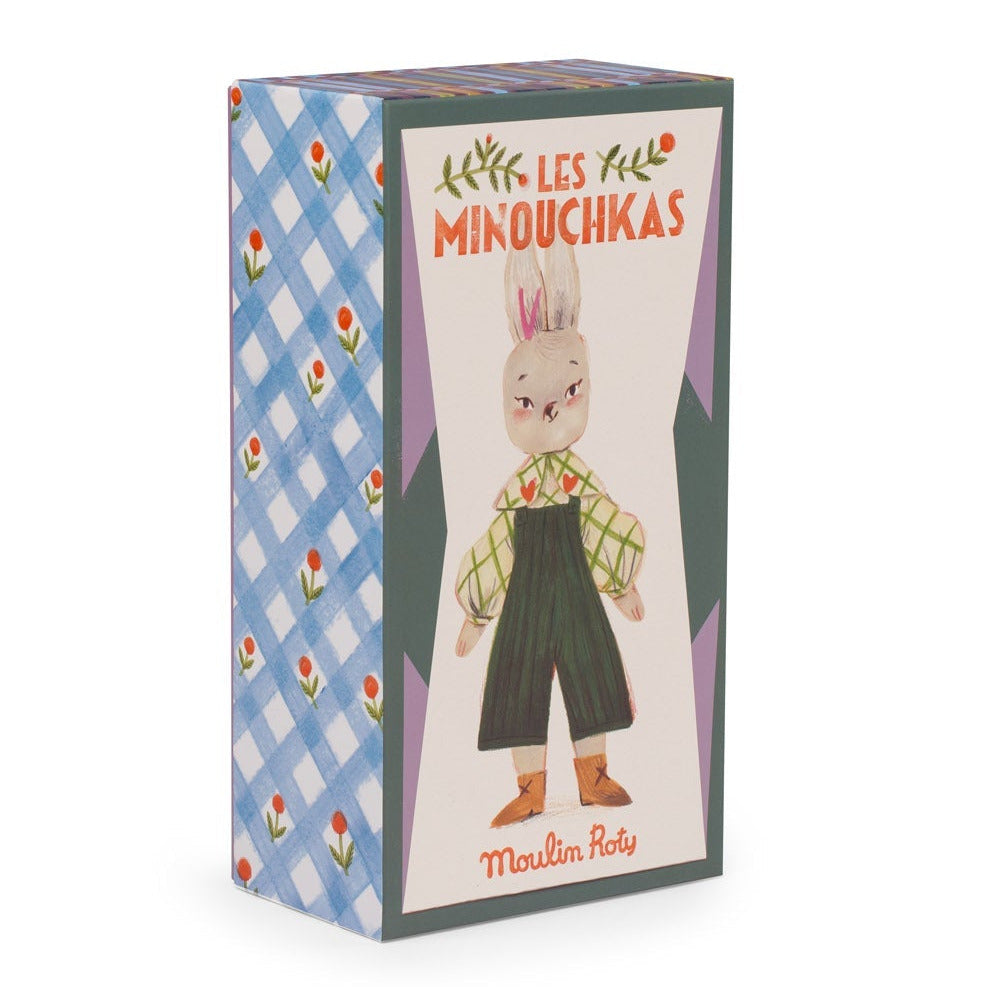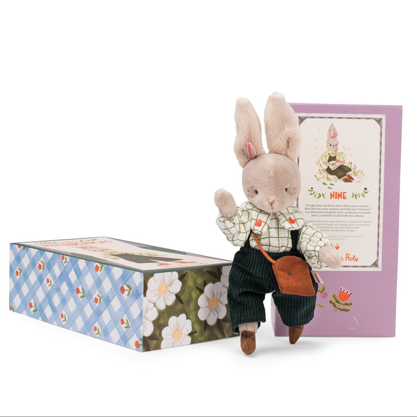 Nine the rabbit cuddly toy is an irresistibly cute, posable figurine, designed by Lucille Michieli, from the Les Minouchkas collection by Moulin Roty. This plush toy always looks stylish, loves reading, and picnics with others.