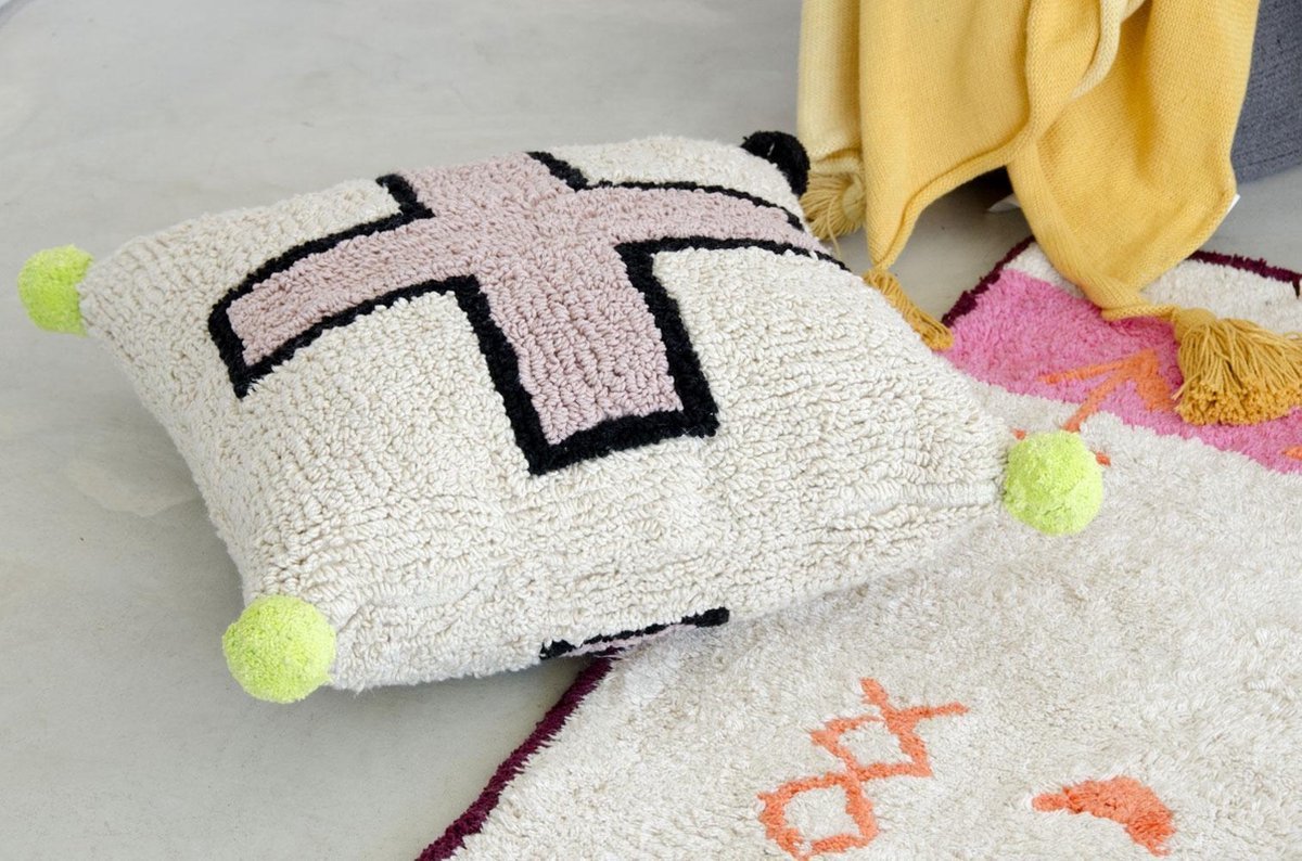 Mooie tapijten en kinderen in huis... het past wél samen dankzij Lorena Canals, opgericht in 1990. Dit Spaans decoratiemerk is gespecialiseerd in vloerkleden, poefs, kussens en speelse, woonaccessoires met bohemian vibes. Unieke wasbare stukken, handgemaakt, duurzaam en ethisch geproduceerd.