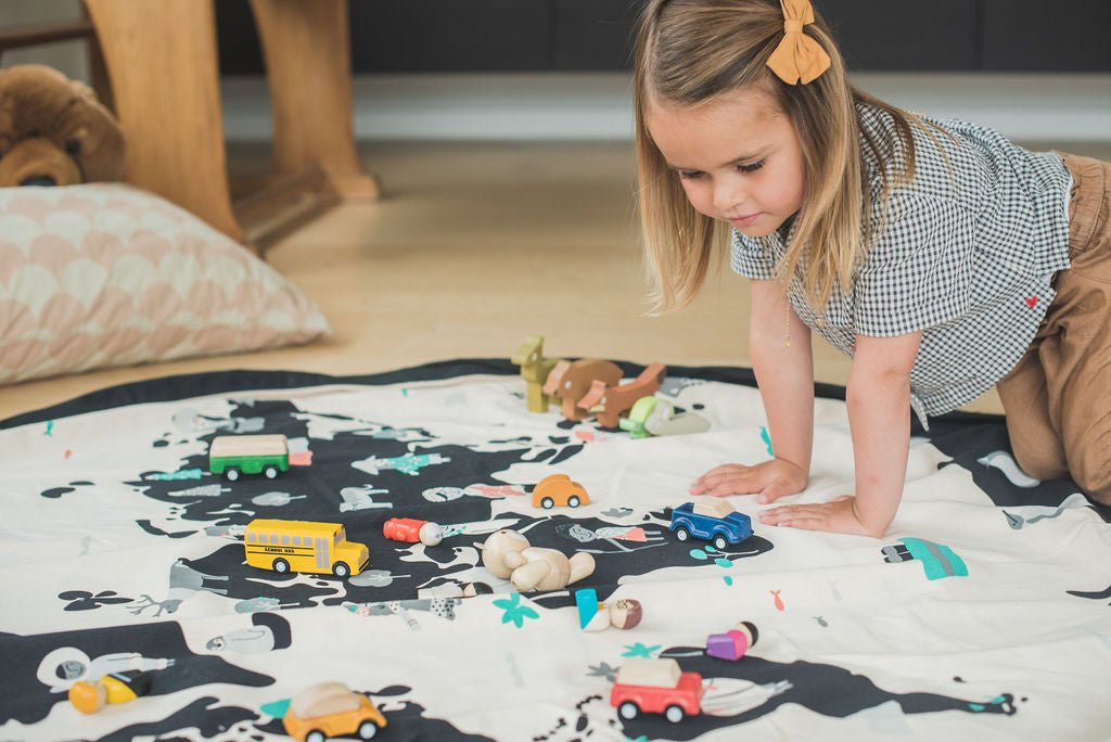 In short: an educational play mat with a world map and a handy toy storage bag all in one: durable, educational, and super practical. A must-have for any child's room or play area!