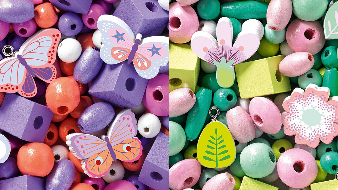 Enchanting beads and colorful bead sets from Djeco are definitely worth discovering. Ideal creative toys for children who love crafting, stringing, and making their own gems or jewelry. Djeco offers sets with wooden beads and pearls in cheerful colors and shapes, as well as complete DIY jewelry kits.